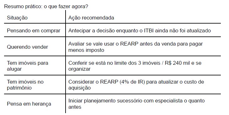 1. Ganho de capital não muda. O imposto de renda sobre o lucro da venda (de 15% a 22,5%) continua como está para a pessoa física que vende imóveis esporadicamente. Essa parte da Reforma Tributária do consumo (IBS/CBS) não altera a tributação federal sobre ganho de capital.