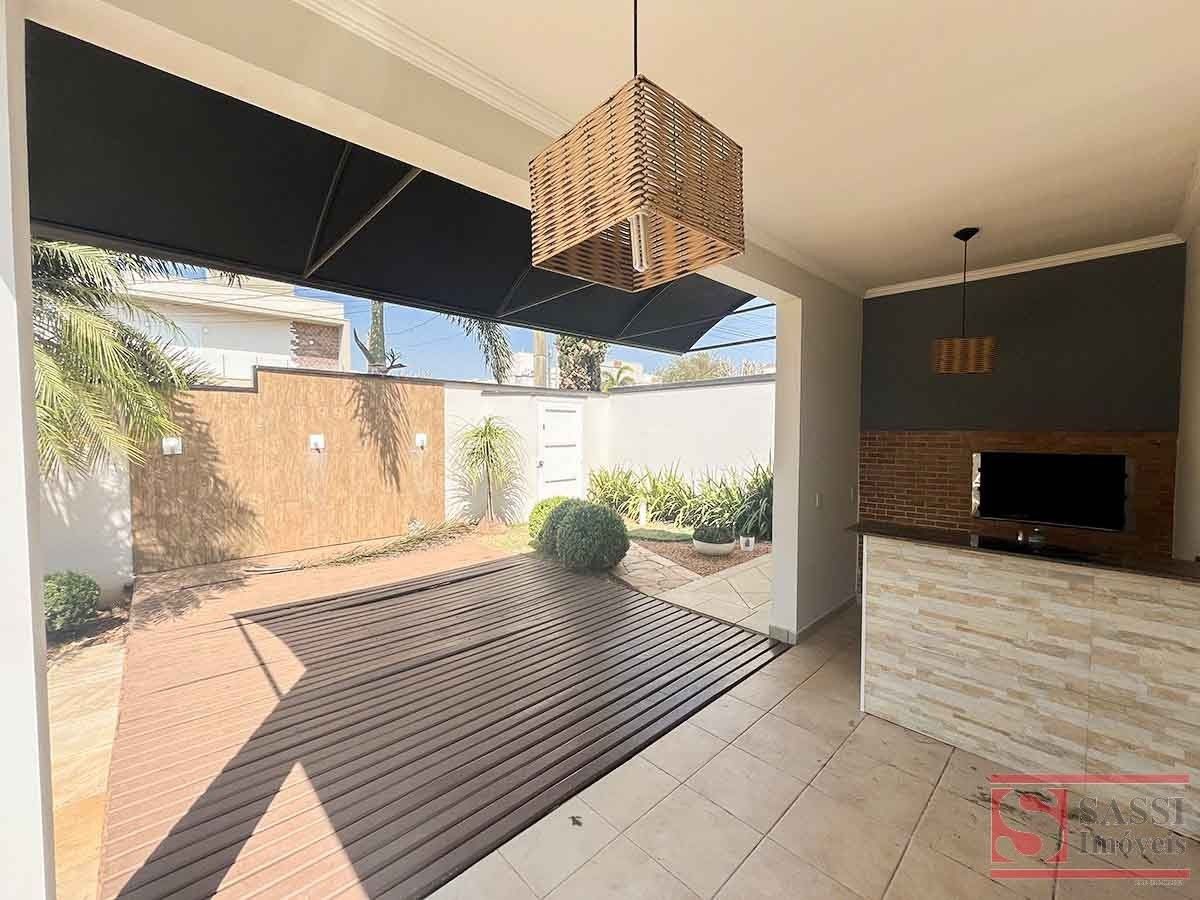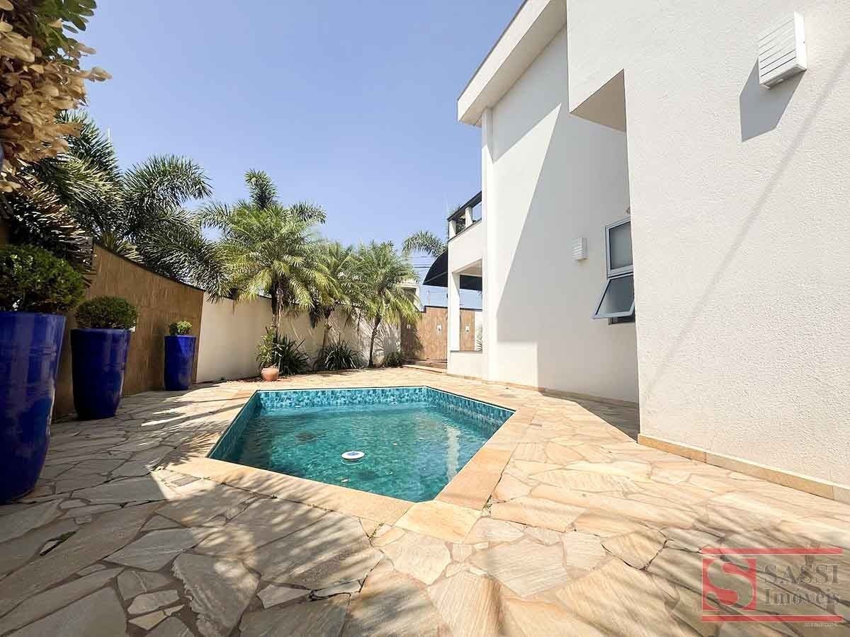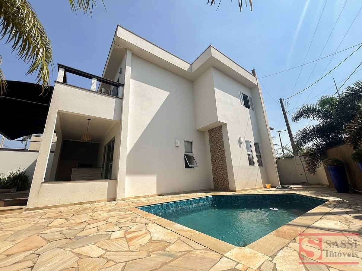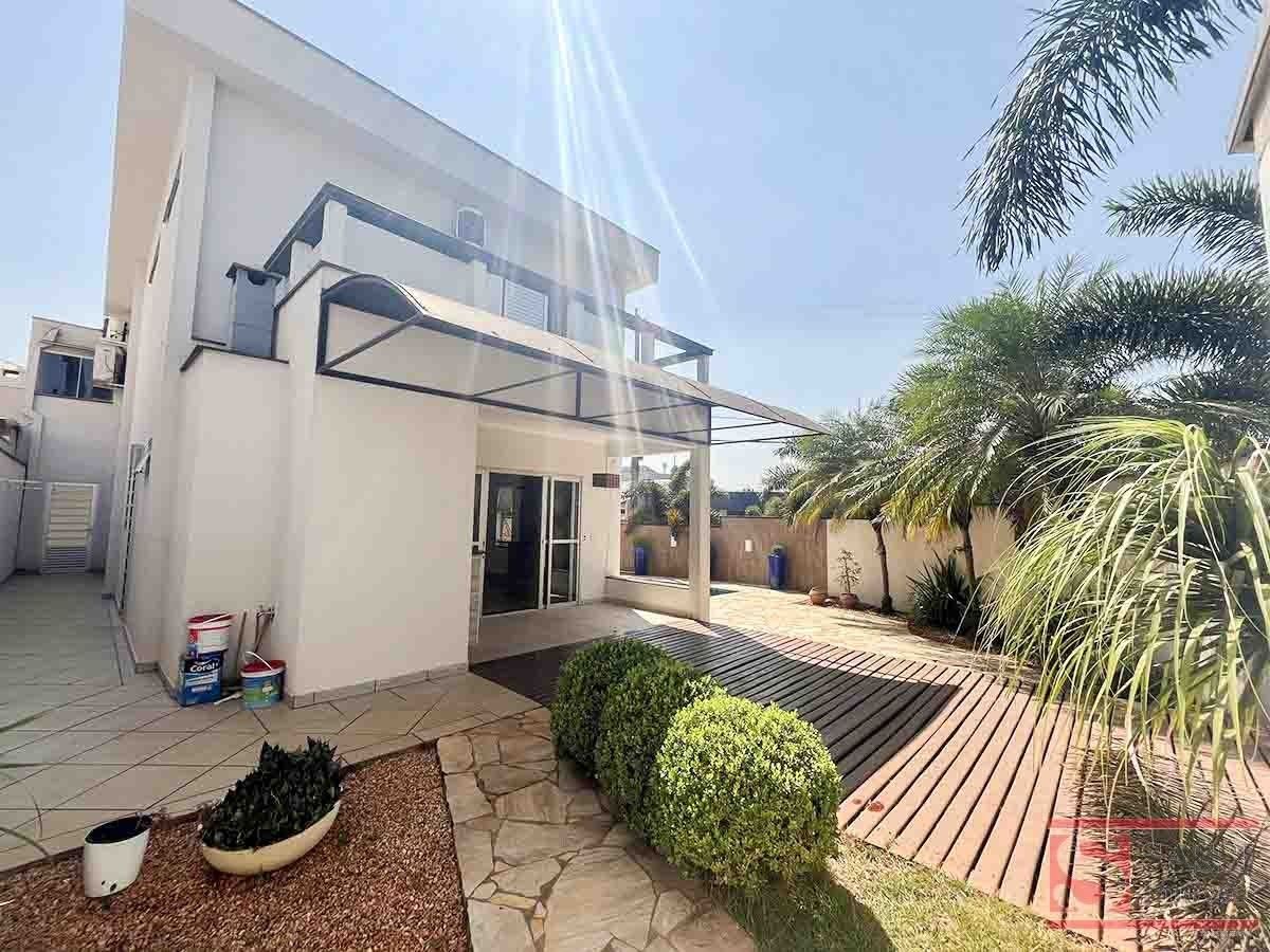 Esta belíssima casa em condomínio oferece um projeto completo, moderno e extremamente funcional, ideal para quem valoriza conforto, sofisticação e privacidade.No piso superior, o imóvel conta com 03 suítes com armários planejados, sendo 02 delas com ar-condicionado e sacada, proporcionando bem-estar e excelente ventilação. Os banheiros das suítes possuem box em blindex e gabinetes planejados. Ainda neste pavimento, há sala de estar e sala de TV com estante planejada, ar-condicionado e um elegante home bar, equipado com pia em granito e armários planejados, ideal para momentos de descontração.O piso inferior apresenta uma ampla sala de estar com painel de TV planejado, sala de jantar, lavabo com pia em granito, escritório com armários planejados e cozinha completa, equipada com armários planejados, micro-ondas, forno a gás e coifa. A área de serviço dispõe de lavanderia coberta com armários planejados e banheiro social de serviço.Para o lazer, o imóvel oferece uma charmosa área gourmet com churrasqueira e pia em granito, integrada à piscina, perfeita para receber amigos e família. A garagem coberta para 02 carros garante segurança e comodidade.O acabamento é um grande diferencial, com piso em porcelanato, cerâmico e laminado, além de teto em laje com acabamento em gesso, conferindo elegância e conforto aos ambientes.Uma residência completa, pronta para viver momentos únicos com qualidade e estilo.