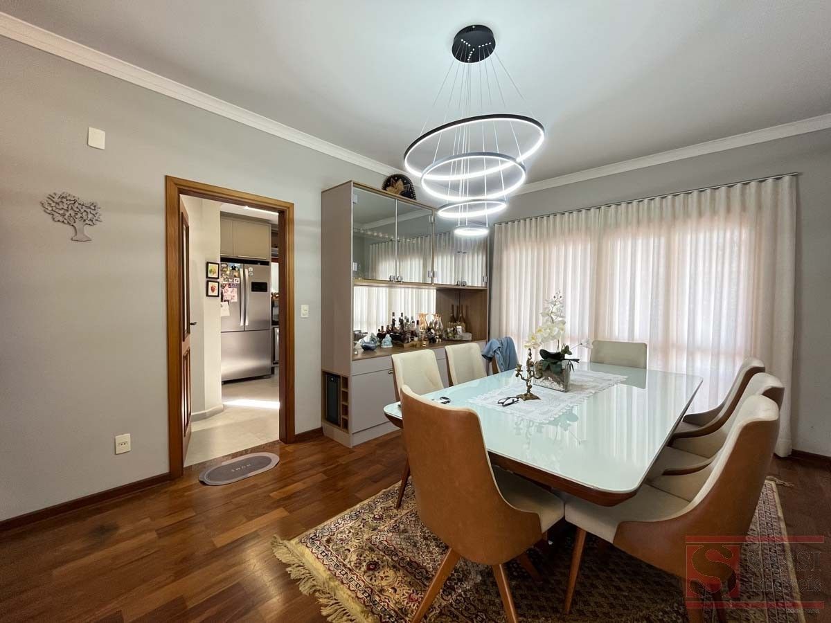 Este imóvel residencial oferece ambientes amplos e bem planejados para quem valoriza espaço e funcionalidade. No piso superior, conta com três dormitórios com armários planejados e ar-condicionado, sendo duas suítes com gabinete e box blindex, além de uma suíte master com sacada e escritório com armários planejados. Há ainda banheiro social que atende aos demais ambientes.No piso inferior, a casa dispõe de sala de estar, sala de jantar com armários planejados e sala de TV equipada com armários e ar-condicionado, além de lavabo. A cozinha conta com armários planejados e bancada em granito, acompanhada de banheiro de serviço, área de serviço com armários e espaço de despejo.A área externa é um destaque à parte, com espaço gourmet equipado com churrasqueira, forno de pizza, armários planejados e ventilador de teto, além de piscina com cascata e banheiro social externo. O imóvel ainda conta com elevador e garagem para quatro carros, sendo duas vagas cobertas.Com pisos em madeira e porcelanato e teto em laje com acabamento em gesso, a residência apresenta um padrão moderno e bem cuidado. Uma excelente oportunidade para quem busca um imóvel completo para viver e receber com qualidade. Agende sua visita e conheça pessoalmente.