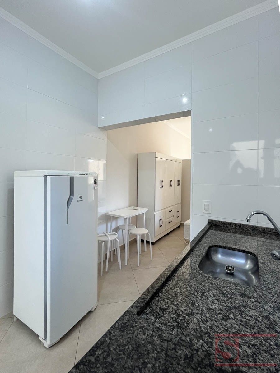 Kitnet Mobiliada com Ar-Condicionado e Excelente AcabamentoKitnet prática e bem equipada, ideal para quem busca conforto e funcionalidade em um espaço compacto. O imóvel conta com 01 dormitório já mobiliado com guarda-roupa, ar-condicionado, 01 colchão de solteiro e 01 colchão de casal, oferecendo comodidade imediata para moradia.A cozinha é equipada com pia de mármore com armário, geladeira e fogão por indução, proporcionando praticidade no preparo das refeições. A sala dispõe de ventilador de teto, garantindo maior conforto térmico no ambiente.O banheiro social possui box de blindex, trazendo um acabamento mais moderno e funcional. O imóvel conta ainda com lavanderia, oferecendo mais praticidade no dia a dia.Com piso em porcelanato e teto em laje com acabamento em gesso, a kitnet apresenta um ambiente bem acabado, moderno e de fácil manutenção.Uma excelente opção para quem procura praticidade, conforto e um imóvel pronto para morar.