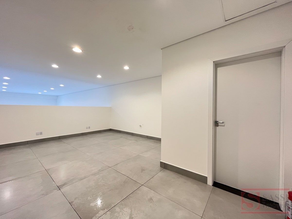 Salão comercial com mezanino e 2 vagas de recuoSalão comercial com aproximadamente 97 m², ideal para diversos tipos de comércio ou prestação de serviços. O imóvel possui ambientes bem distribuídos, proporcionando praticidade e funcionalidade para o seu negócio.Conta com copa equipada com gabinete planejado e pia de mármore, além de 02 banheiros sociais adaptados, sendo 01 com armário planejado.O imóvel dispõe ainda de mezanino no piso superior com aproximadamente 28 m², contendo 01 banheiro social, oferecendo espaço adicional que pode ser utilizado como escritório, estoque ou área administrativa.Na parte frontal, possui 02 vagas de recuo, facilitando o acesso de clientes.Acabamento com piso em porcelanato e teto em gesso, proporcionando um ambiente moderno e bem estruturado para atividades comerciais.