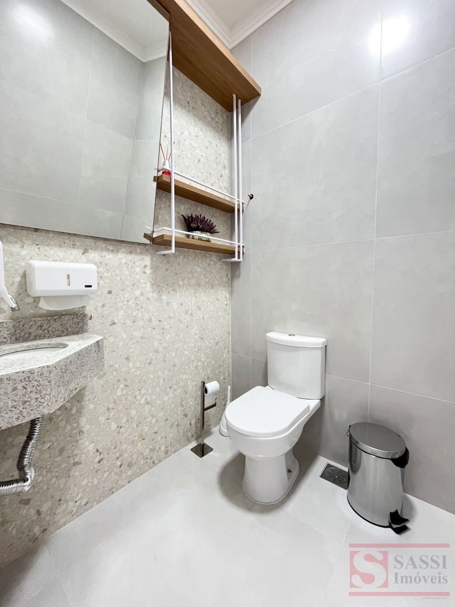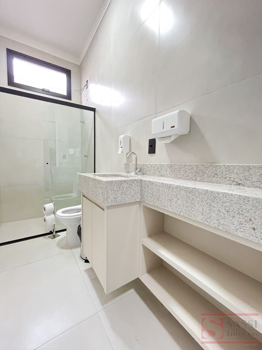 Sala Comercial com 18 m², Ar-Condicionado e Vaga Coberta Sala comercial bem distribuída, ideal para quem busca um espaço funcional e pronto para atendimento. Conta com ar-condicionado e pia de mármore, garantindo mais conforto e praticidade no dia a dia.Dispõe de estrutura compartilhada com recepção, três banheiros sociais sendo dois adaptados, copa e lavanderia coberta, oferecendo suporte completo para a rotina.A vaga coberta para um carro agrega mais comodidade e segurança.Com piso em porcelanato e teto em laje com acabamento em gesso, apresenta um ambiente moderno e de fácil manutenção.Ótima oportunidade para iniciar ou expandir seu negócio. Agende sua visita.