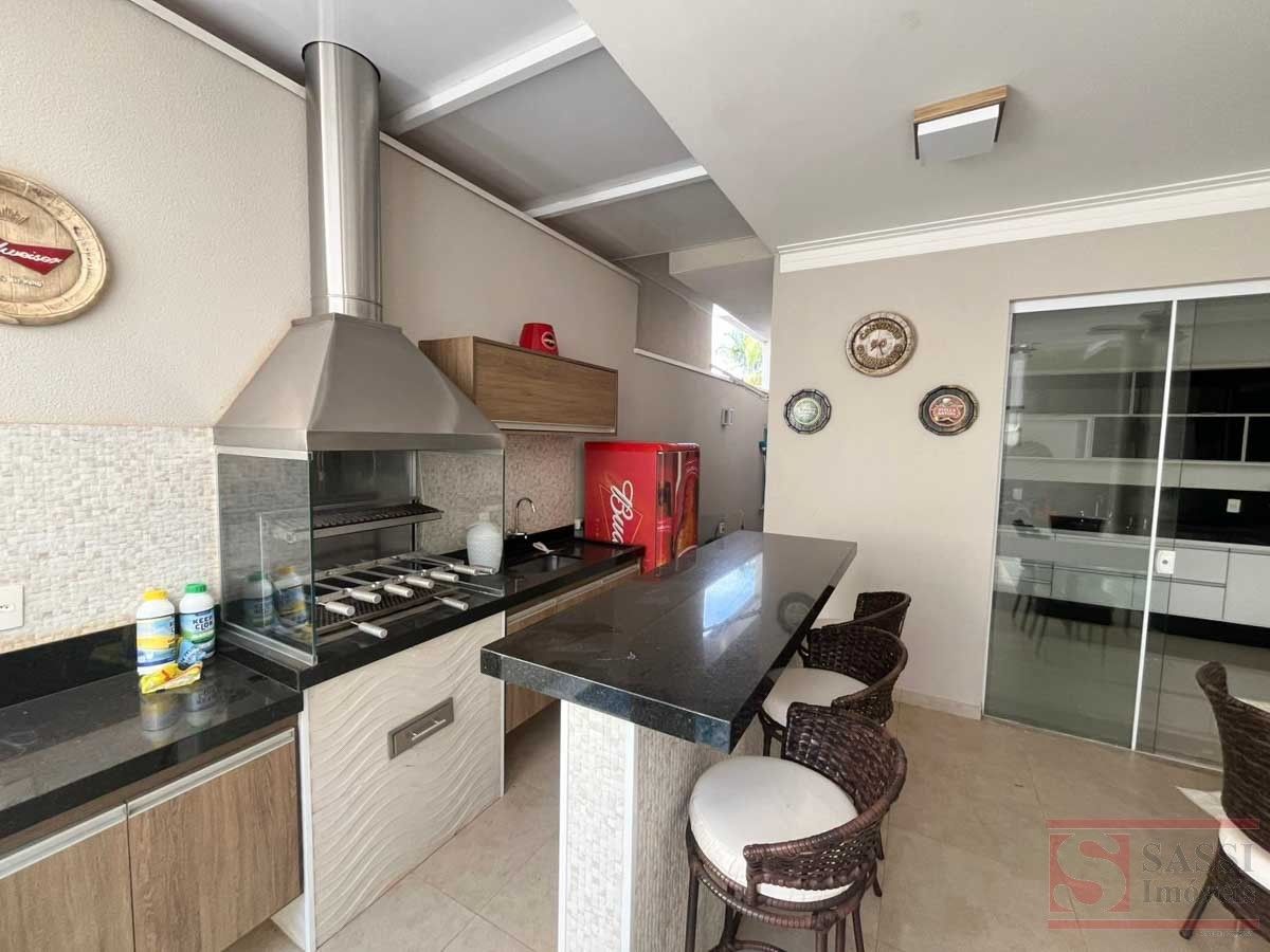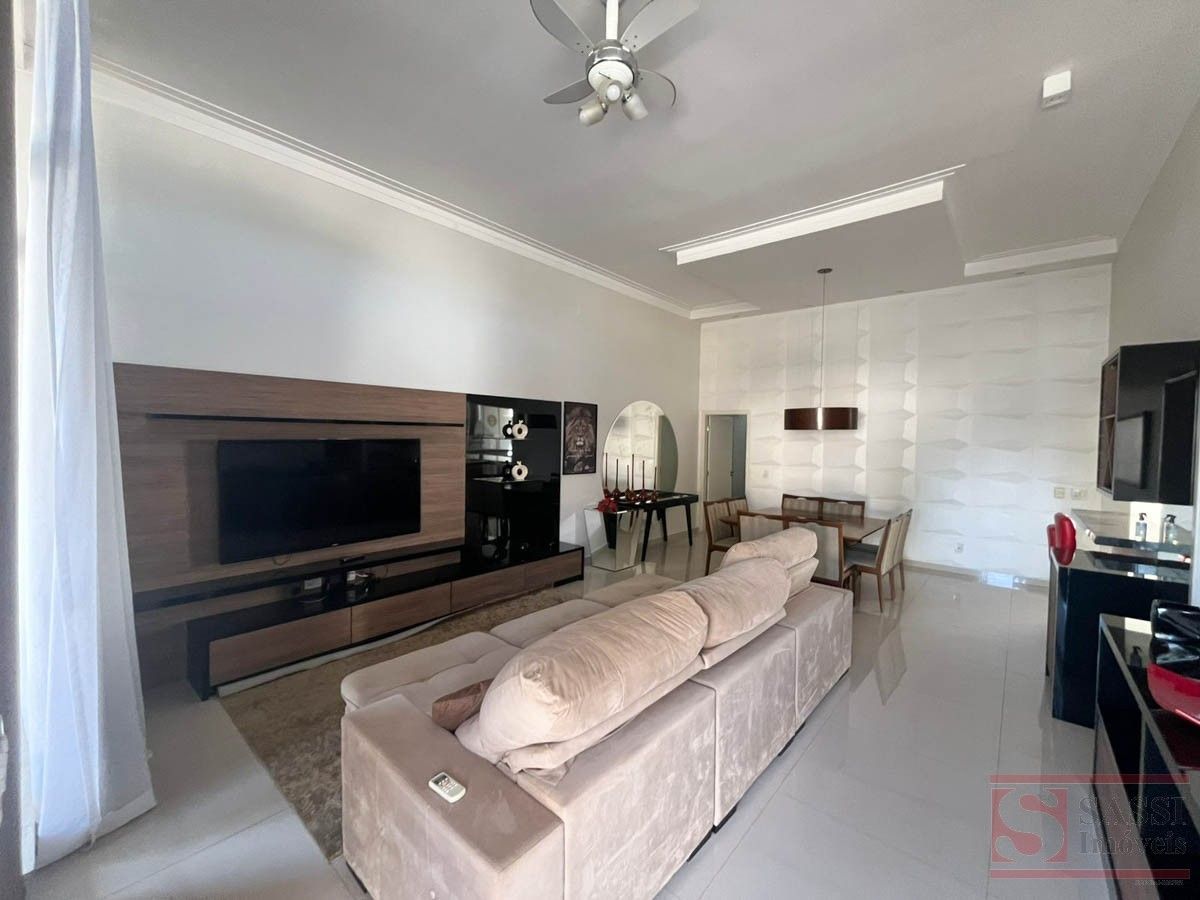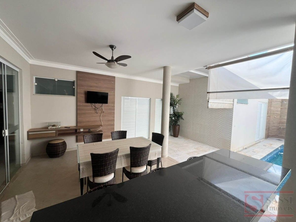 Casa Alto Padrão com 3 Suítes, Lazer Completo e Energia Solar Imóvel completo e mobiliado, ideal para quem busca conforto, sofisticação e praticidade. Conta com três suítes com móveis planejados, TV e ar-condicionado, sendo uma suíte com sofá e uma suíte master com cama e closet.A sala em dois ambientes é equipada com sofá, TV e estante, além de lavabo. A cozinha é totalmente planejada, com forno, cooktop, micro-ondas, geladeira, TV e mesa, oferecendo um ambiente funcional e pronto para uso.A área de serviço possui armários planejados, enquanto a área gourmet se destaca com churrasqueira, pia, balcão, TV, mesa e geladeira, integrada à piscina, criando um espaço perfeito para lazer.O imóvel conta ainda com sistema de energia fotovoltaica e garagem para quatro carros, sendo duas vagas cobertas.Com piso em porcelanato e teto em laje, é uma excelente opção para quem deseja morar com alto padrão e tudo à disposição. Agende sua visita.