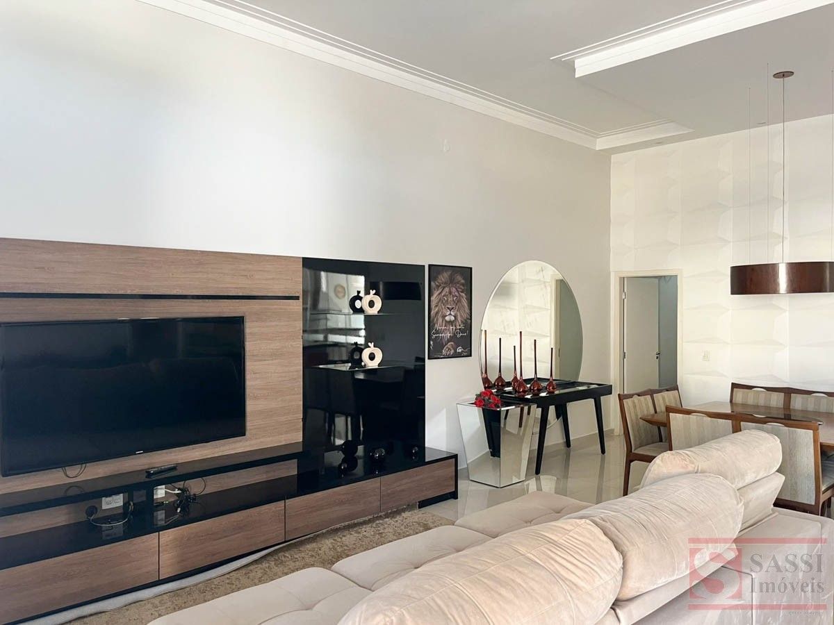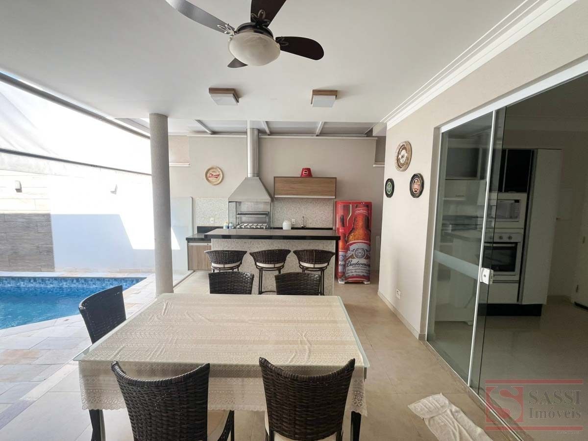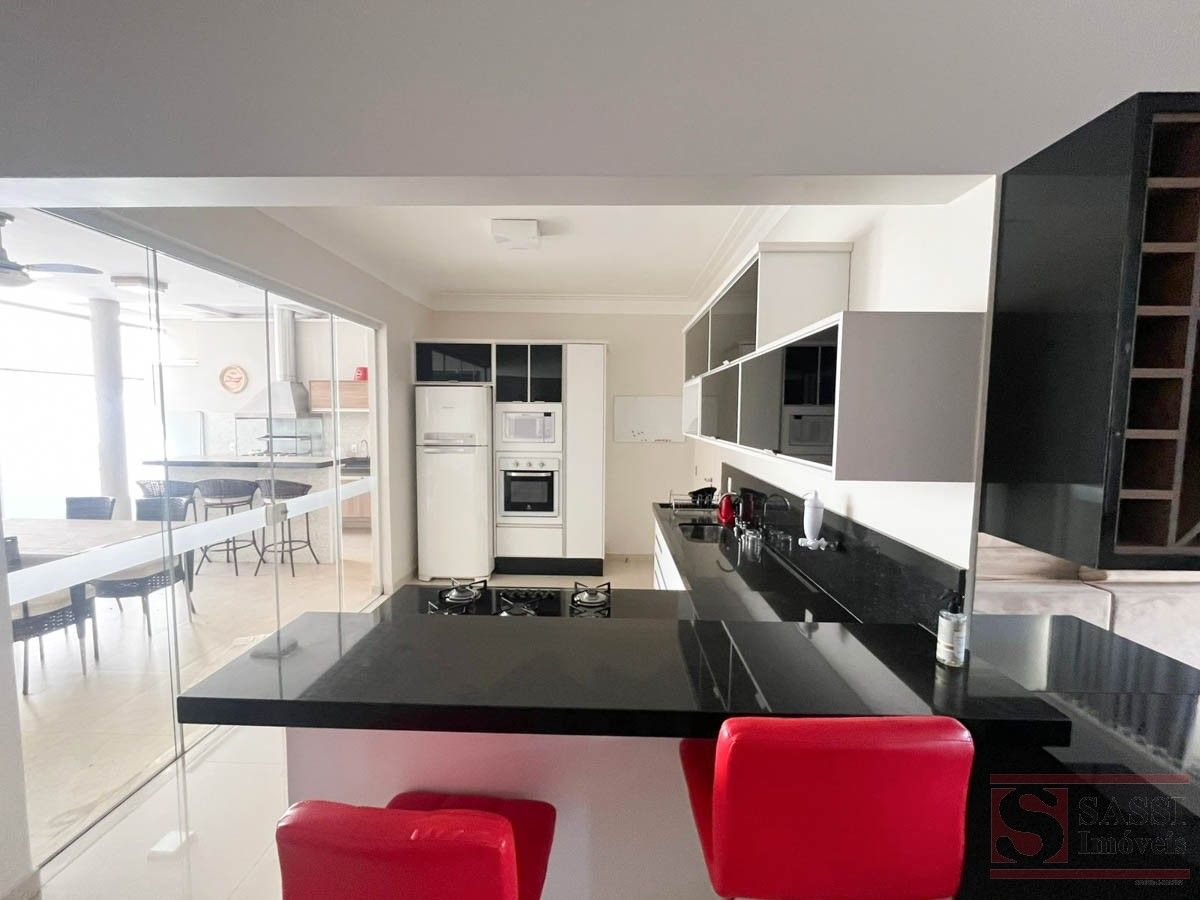 Casa Alto Padrão com 3 Suítes, Lazer Completo e Energia Solar Imóvel completo e mobiliado, ideal para quem busca conforto, sofisticação e praticidade. Conta com três suítes com móveis planejados, TV e ar-condicionado, sendo uma suíte com sofá e uma suíte master com cama e closet.A sala em dois ambientes é equipada com sofá, TV e estante, além de lavabo. A cozinha é totalmente planejada, com forno, cooktop, micro-ondas, geladeira, TV e mesa, oferecendo um ambiente funcional e pronto para uso.A área de serviço possui armários planejados, enquanto a área gourmet se destaca com churrasqueira, pia, balcão, TV, mesa e geladeira, integrada à piscina, criando um espaço perfeito para lazer.O imóvel conta ainda com sistema de energia fotovoltaica e garagem para quatro carros, sendo duas vagas cobertas.Com piso em porcelanato e teto em laje, é uma excelente opção para quem deseja morar com alto padrão e tudo à disposição. Agende sua visita.