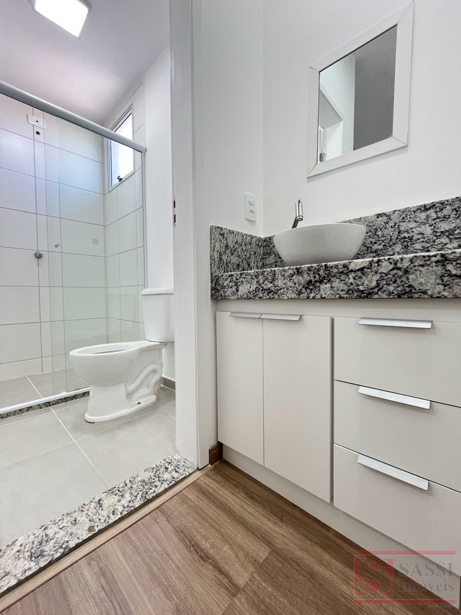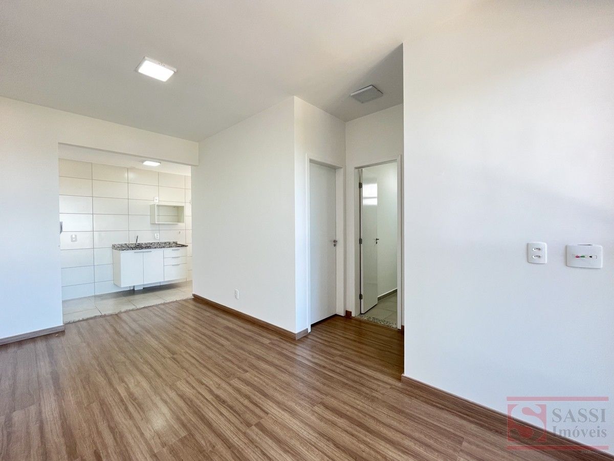 Apartamento com Suíte, Sacada e Planejados Apartamento bem distribuído, ideal para quem busca conforto e praticidade no dia a dia. Conta com dois dormitórios, sendo uma suíte com gabinete planejado e box em blindex.A sala em dois ambientes é aconchegante e integrada à sacada, trazendo mais ventilação e luminosidade. A cozinha possui gabinete planejado e interfone, conectada à lavanderia, otimizando o espaço.O banheiro social também conta com box em blindex e gabinete planejado. A vaga para um carro completa o imóvel com comodidade.Com piso em cerâmico e laminado e teto em laje, é uma ótima opção para quem deseja morar em um ambiente funcional e bem cuidado. Agende sua visita.