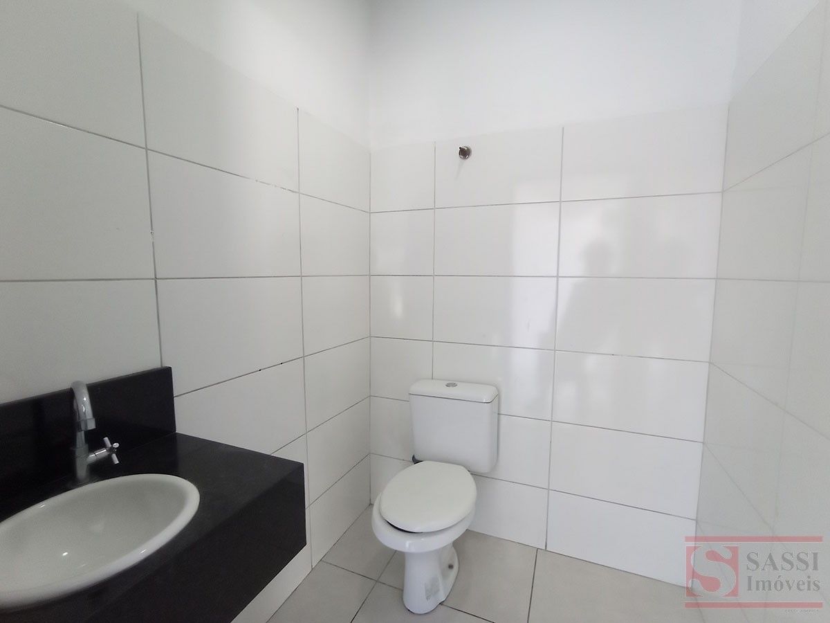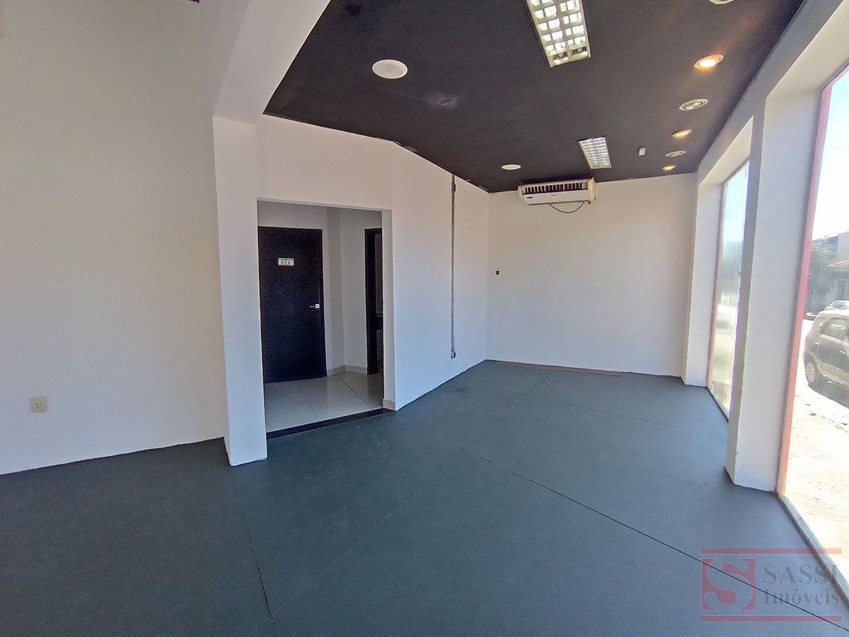 Amplo salão com aproximadamente 100 m², ideal para comércios e serviços. Conta com 2 banheiros, piso cerâmico e contrapiso, além de teto em laje com acabamento em gesso.
