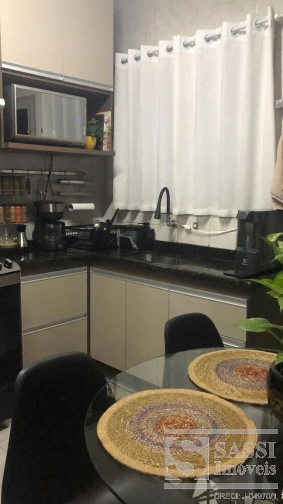 Casa localizada Pq. Abílio Pedro com dois dormitórios, sala de estar equipada com painel de TV, cozinha com planejados, banheiro, área de serviço com armários embutidos, garagem privativa e portão eletrônico.