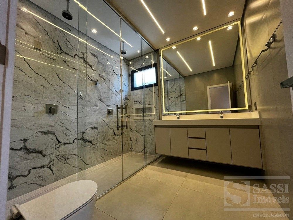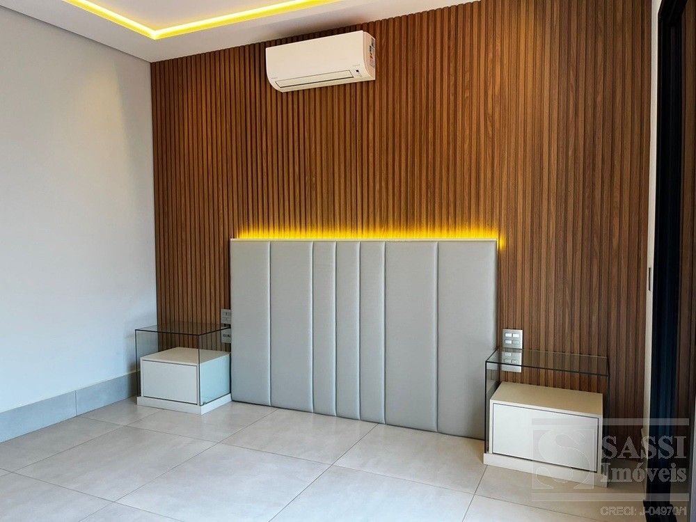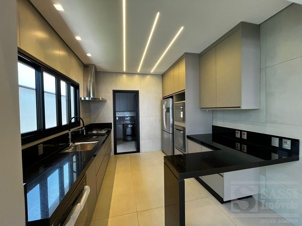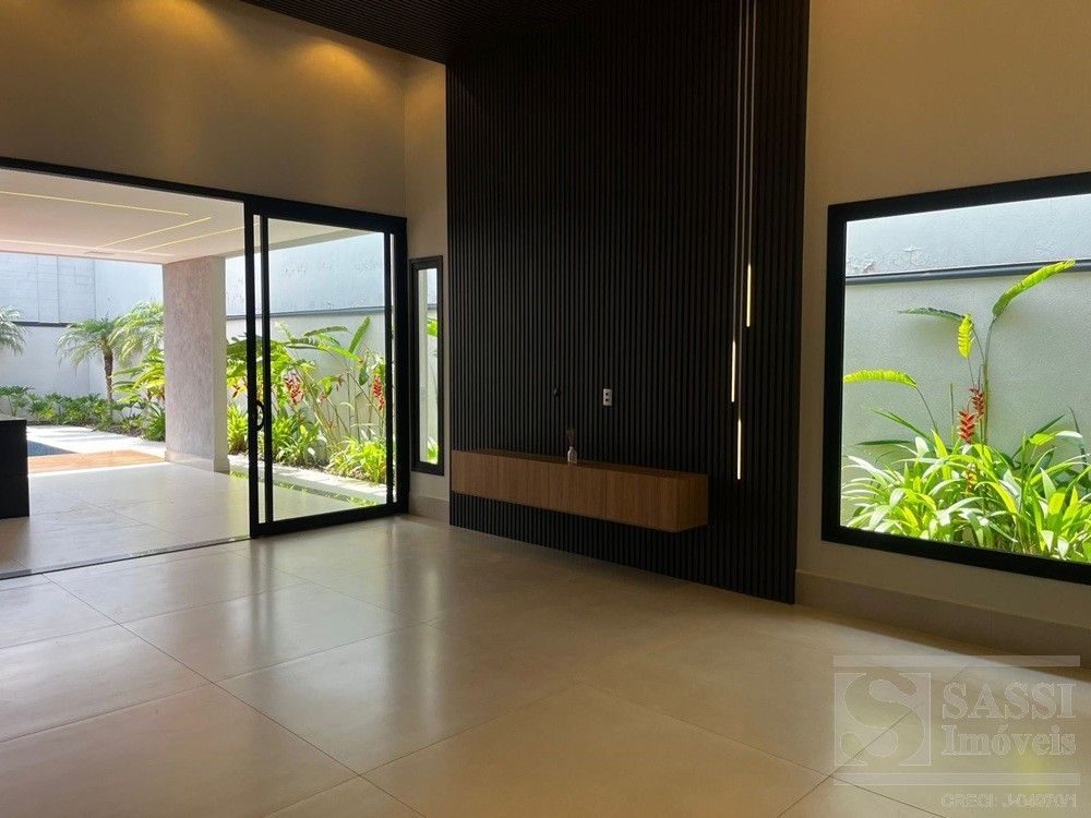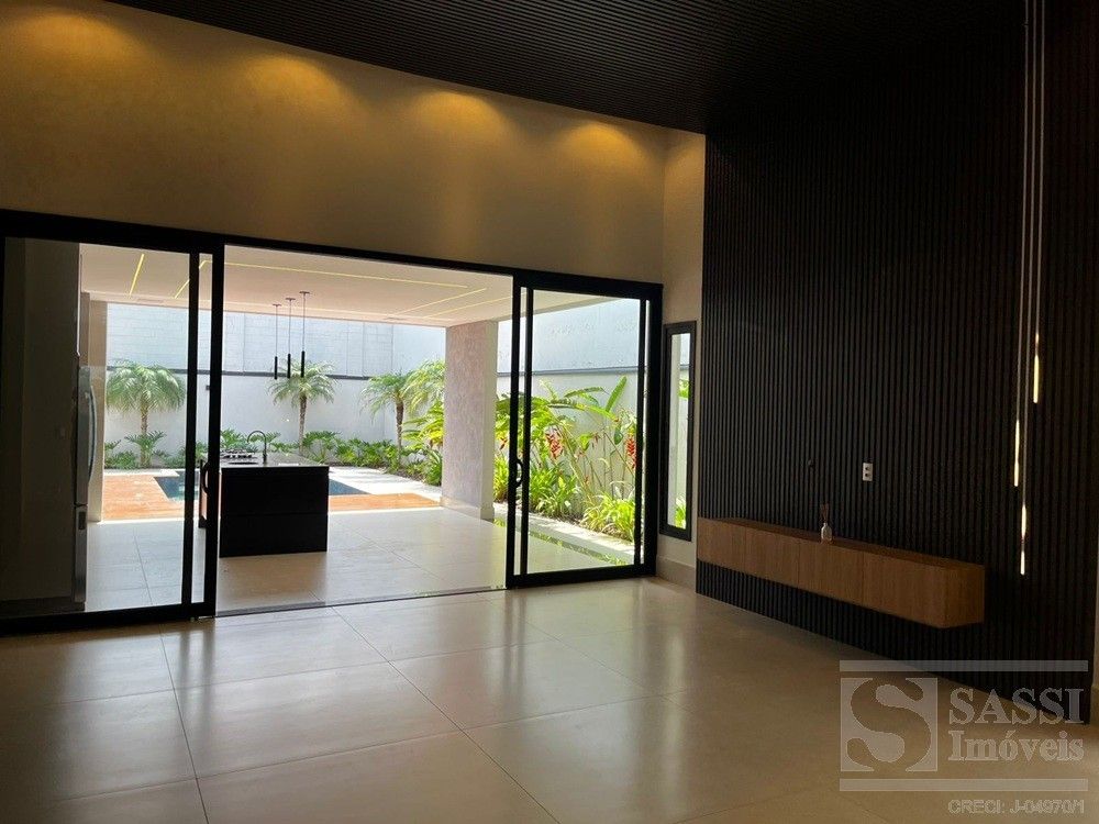 Linda casa térrea, com conforto e Sofisticação em Cada Detalhe com: 03 suítes, sendo 01 máster com closet, duchas e cubas duplas, todos com planejados, iluminação elegante em LED e climatizados. Conta ainda com escritório planejado com banheiro, ideal para quem trabalha em home office. A sala para dois ambientes possui painel ripado com iluminação em LED e caixas de som JBL, integrando-se perfeitamente à cozinha americana planejada, equipada com geladeira, fogão cooktop, forno e micro-ondas Brastemp, lava-louças Brastemp e depurador Franke. A lavanderia também é planejada e já conta com máquina de lavar e secar LG. Na área externa, destaque para a área gourmet completa, equipada com geladeira Brastemp, cooktop e caixa de som JBL, além de banheiro externo. A piscina com hidro e prainha é cercada por um deck de madeira garapeira (10,3 cm), proporcionando um espaço perfeito para lazer e relaxamento. Garagem para 03 veículos, sendo 02 vagas cobertas.